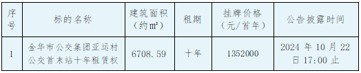 金华市公交集团亚运村公交首末站十年租赁权招租公告