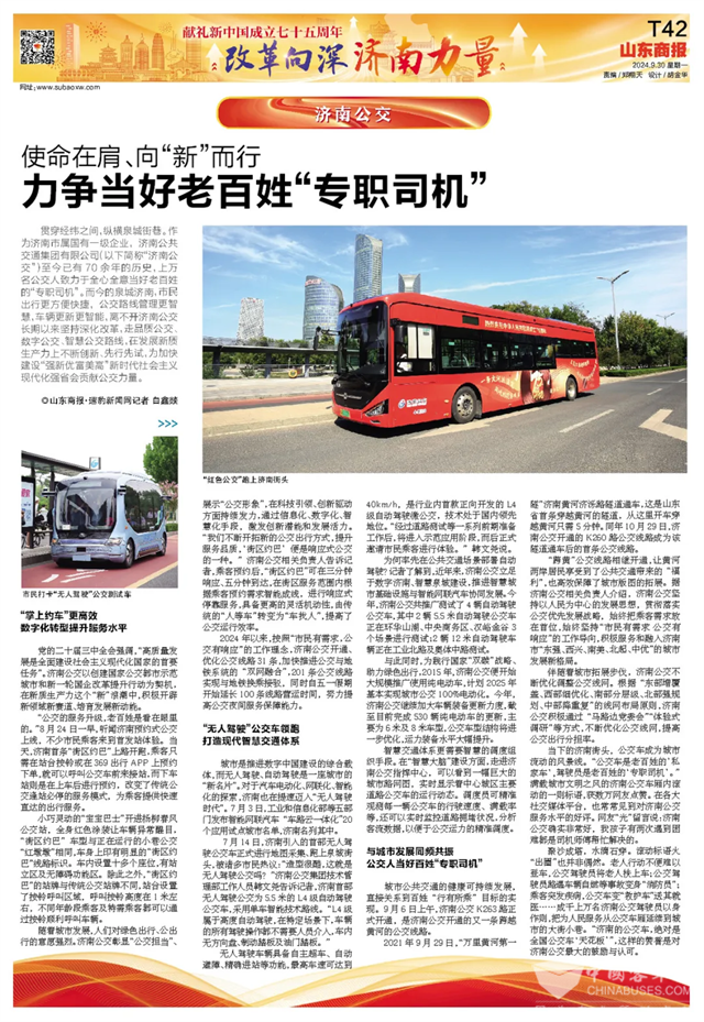 深化服务护航美好出行。徐州公交集团以乘客出行需求为导向,不断深化拓展服务内涵。开展“服务质量提升年”活动,大力创建星级服务、标准化示范线路,打造爱心敬老、爱心阳光专线;打造的卡座式公交主题车厢在网络上“火出圈”;推进适老化建设,提升无障碍交通“软服务”,在敬老公交车厢,增设轮椅、血压仪,备有应急物品和便民药箱;完成城建重点工程项目和电子站牌等“为民办实事”项目……运营服务措施、优质服务举措等多次受到国家级、省级主流媒体点赞。