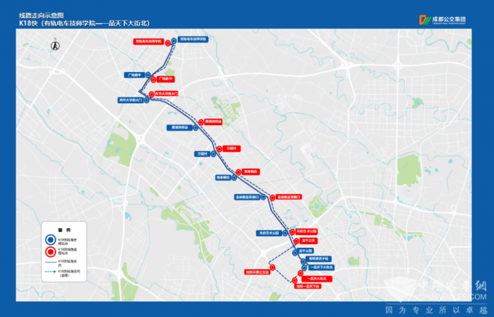 为进一步提升红光大道沿线市民跨区通勤出行效率,成都公交持续深化公交“八连”服务,依托BOCC系统精准画像通道快线K18线乘客乘车起止点,科学分析各站点客流情况,筛选出K18线站点客流量大、早晚高峰时段出行较为集中且上下车客流量具有明显峰值特征的有轨电车技师学院、西华大学南大门、犀浦快铁站等12个大站站点。在K18线既有基础上,开行只停大站、快速通达的“K18快”,为市民跨区通勤开启“加速模式”。