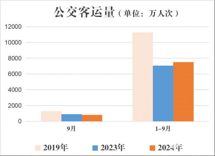 9月完成公交客运量799万人次,比2023年下降10.18%,比2019年下降38.02%。