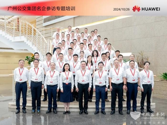 为深入落实党中央、国务院关于加快建设世界一流企业的决策部署,落实党的二十届三中全会精神和中央经济工作会议部署要求,对标头部企业管理,强化战略意识,大力拓展国际市场,2024年10月24日至26日,广州公交集团组织集团领导班子、高管,总部各部室负责人及集团直属单位主要领导到华为深圳坂田基地开展培训。