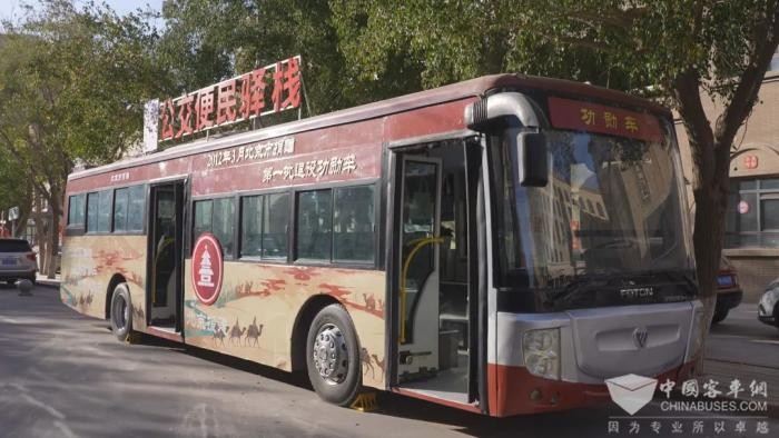 为了让这批“功勋车”实现“退役不褪色”,和田市从中选取了1辆面临报废的公交车进行试点改造,实现再利用。目前,这辆车作为文创馆,摆放在和田团城。