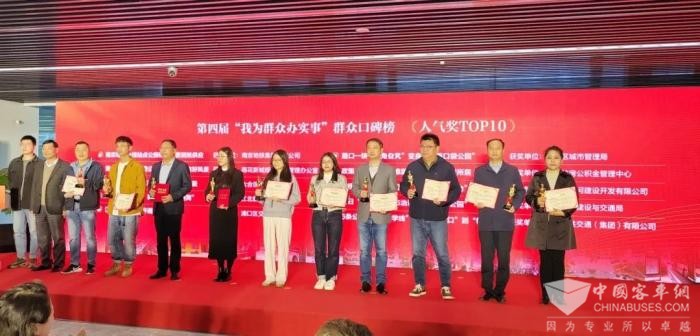 2024年11月7日,在中共南京市委宣传部、南京市发展和改革委员会(市民生办)、新华报业传媒集团指导下,由扬子晚报主办的长三角主流媒体走进南京江北新主城暨“强富美高”口述史社区篇启动仪式正式举办。南京公交集团6条公交“通学线”项目和长江五桥开通跨江公交项目,在第四届“我为群众办实事”群众口碑榜活动中,荣获“人气奖”称号。