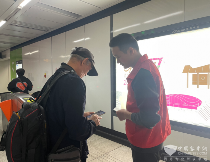 比赛当日,吴中公司组织开展了公交管家现场服务,在大客流公交站点,他们提醒市民乘客公交临时改道情况。同时,实时掌握道路管制和通行情况,及时对线路进行临时调整和恢复,确保了赛事期间的运力充足和交通顺畅。