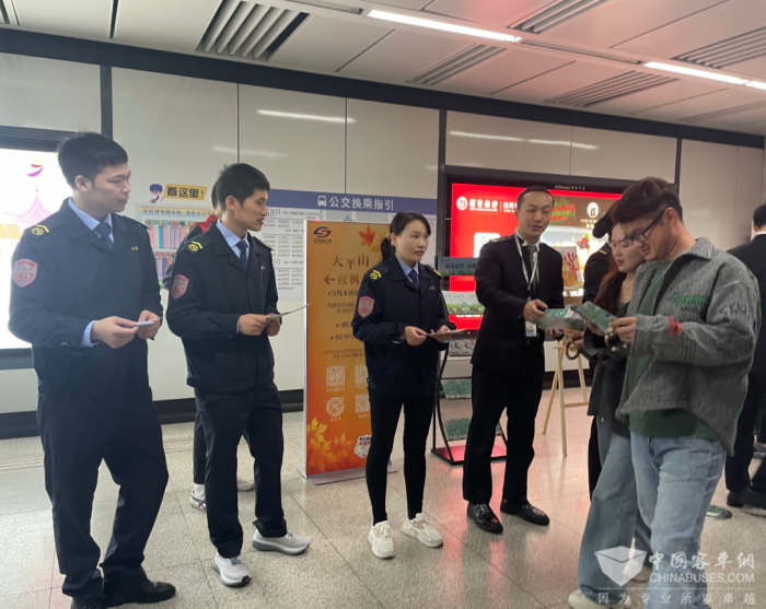 双方员工代表共同来到地铁站厅出站口,为前往天平山赏枫的市民推荐“假日6号线”直达景区,提供换乘指引,并发放天平山景区路线的小卡片。同时,他们还向市民介绍了公共交通换乘优惠政策、换乘公交查询指引以及安全乘坐公共交通的注意事项,培养了市民绿色出行的习惯。