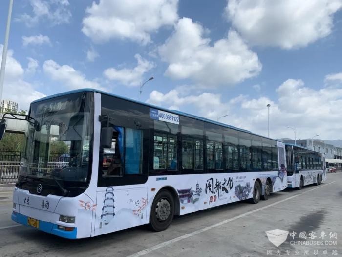 2015 年,福州迎来高光时刻——承办第一届青运会,整座城市盛装以待,51 路公交顺势再度升级。考虑到赛事期间暴增客流与线路特殊性,51路又逐步换装为13.65 米的金旅 XML6145J98C 型客车,这是福州公交引入的首款大型低地板城市客车,车身更长、运力大增,车辆核载人数可达126人,极大程度缓解市区主要道路客流的运输效率,“低地板”车厢贴心设计,全车近乎无台阶,老人小孩乘车安全无忧。