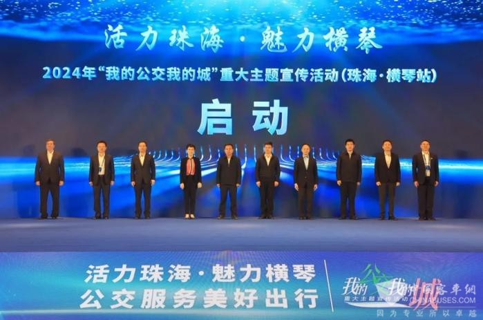 2024年 12月5日,由交通运输部主办的2024年“我的公交我的城”重大主题宣传活动(珠海·横琴站)启动,在毗邻澳门特区的横琴岛上迎来年度收官。交通运输部新闻发言人、政策研究室副主任孙文剑,交通运输部运输服务司城市交通处副处长孟国强,珠海市人民政府副秘书长王玲萍,横琴粤澳深度合作区执委会副主任吴子健,中国交通报社副社长慕顺宗,国家发展和改革委员会综合运输研究所城市交通运输中心主任程世东,珠海市交通运输局党组书记、局长王朝晖,珠海公共交通运输集团有限公司党委书记、董事长蒋模平出席活动并讲话。广东省交通运输厅副厅长徐海波,澳门交通事务局副局长郑岳威,横琴粤澳深度合作区城市规划和建设局局长张国基等行业管理部门、研究机构、公交企业、媒体代表近300人参加活动。