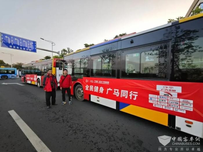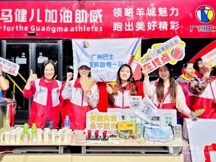 广州巴士集团精心打造了一台“应援巴士”,停放在越秀区海印桥总站,作为广马选手的“能量补给站”。