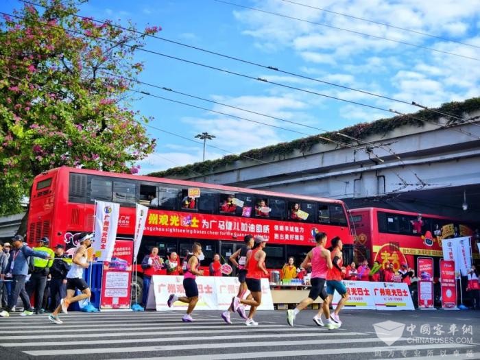 12月7日至9日期间,广州观光巴士为所有广马选手提供免费乘车服务。跑友们只需出示广马号码牌,即可领取“广州观光巴士纪念车票”,无限次乘坐观光巴士。