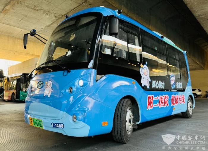 此次9090路“附二院健康专线”在便民服务上可是下了不少功夫。公交车型全部采用最新款的“宝宝巴士”,并被赋予了寓意健康与幸福的名字——“蘇康康”。这款小巧灵活的公交车,车身长度仅6米,宽度2米,能够轻松穿梭于医院内部通道,为患者提供更加快速、便捷的就诊交通服务。