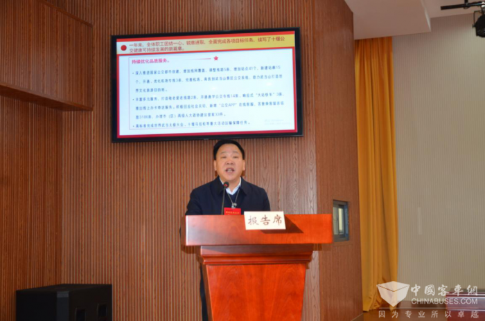 市公交集团党委副书记、总经理黄朝双作职代会工作报告