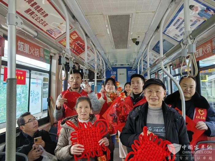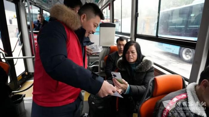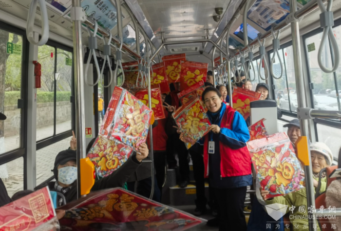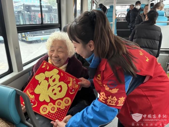 活动现场,公交志愿者将福字、窗花送到乘客手中,将载满平安祝福的心意送到乘客心上,叮嘱市民节假日出行乘车注意安全,平安快乐迎新春。