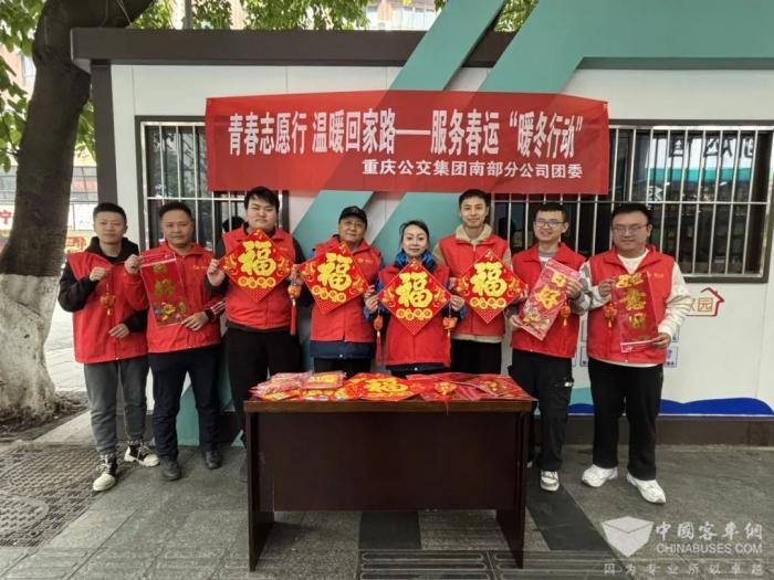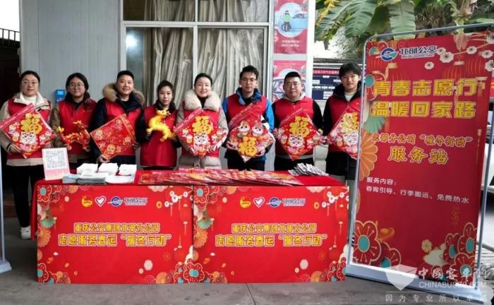 青年志愿者们在歇马枢纽站、同兴枢纽站、光亮天润城站场、两江名居公交站等4个客流相对集中的站点设置了志愿服务站,与乘客面对面宣传春运安全,服务乘客平安出行,引导乘客有序乘车,为乘客们带来出行便捷。