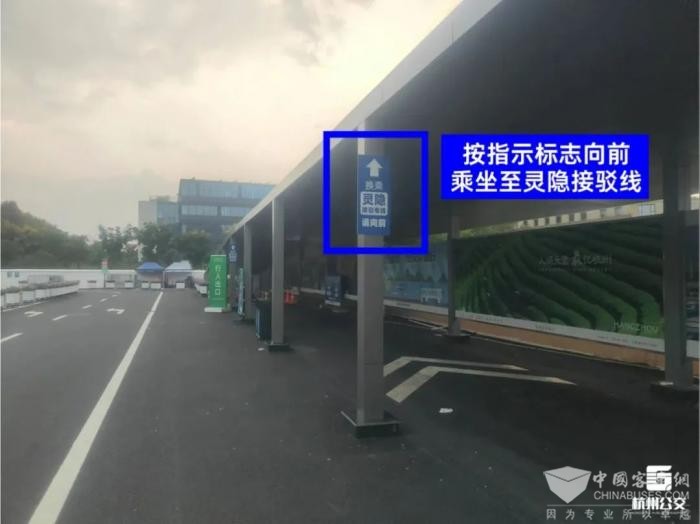 市民游客打车时可将目的地设置为西溪路608号停车场,下车后按照现场标识步行至明谷街上客点,换乘直达灵隐景区的接驳专线,坐上公交接驳专线,基本一路直行,穿过灵溪隧道后便很快能抵达灵隐景区,全程仅需10分钟,大大节省了市民游客的出行时间。