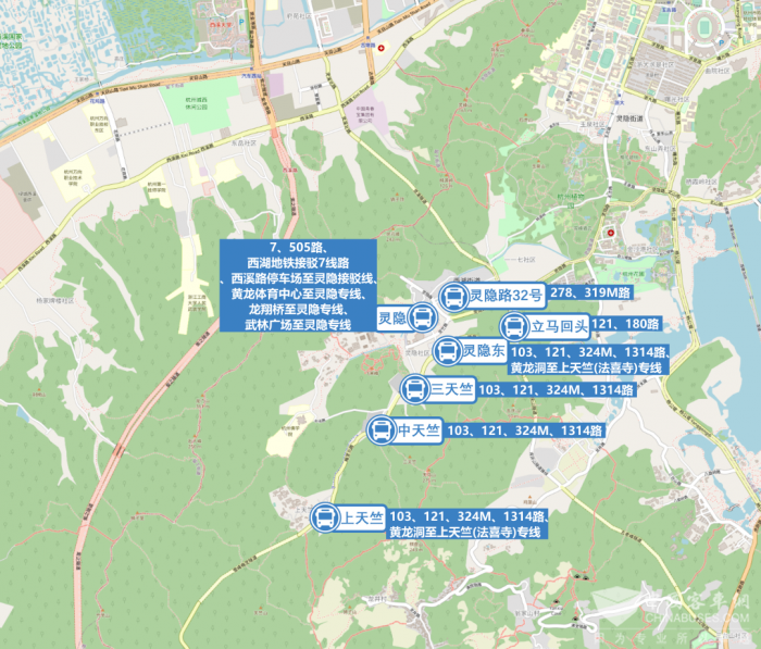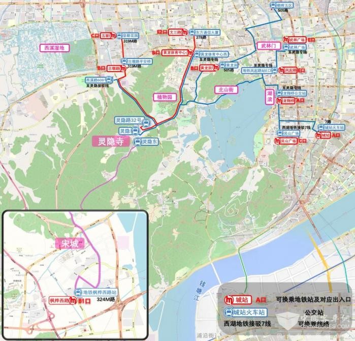 市民游客也可以参考下方“灵隐景区公交线路示意图”,了解具体的线路和站点信息,以便更好地规划出行路线哦~