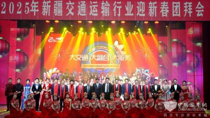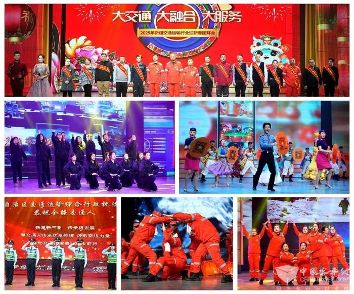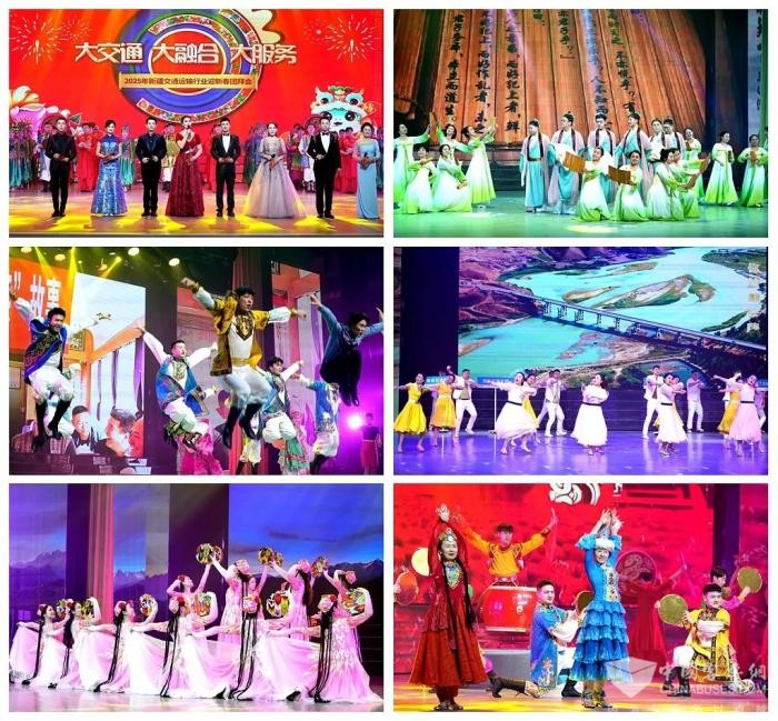 祥龙摆尾辞旧岁,金蛇纳福迎春来。2025年1月24日,由新疆交通运输厅主办,中国民用航空新疆管理局、新疆邮政管理局、中国民用航空新疆空中交通管理局、中国铁路乌鲁木齐局集团有限公司、中国邮政集团有限公司新疆分公司、中国南方航空集团有限公司新疆分公司、新疆交通投资(集团)有限责任公司、新疆商贸物流(集团)有限公司、新疆文化旅游投资集团有限公司共同协办的2025年新疆交通运输行业迎新春团拜会在铁路影剧院举行,这是新疆历史上首次交通全行业的集体团拜活动。自治区领导,新疆交通运输厅历任老领导及自治区相关委办厅局和兵团交通运输局等单位领导观看文艺演出,新疆交通运输行业干部职工代表欢聚一堂,喜迎新春、共享盛宴。