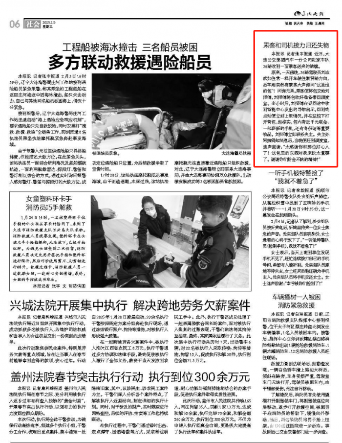 中国完美作业网有免费视频2025年2月10日获悉,近日,大连公交集团汽车一分公司张家车队36路收到一面乘客送来的锦旗。原来,一天傍晚,36路驾驶员刘志武如往常一样开车驶往聚贤路方向,后车厢突然有乘客大声询问“这是谁的包”?问询无果,乘客便将包交给刘师傅,刘师傅将包收好准备带回调度室。半小时后,刘师傅在返回途中收到智能中心发出的寻物启示,回到终点站便立刻上报情况,并在监控下打开背包,经核实,包内有近千元现金、一部崭新的手机,还有身份证等重要物品。刘师傅立即联系失主。失主孙阿姨得知消息后,当晚便赶到调度室,连声道谢:“太感谢你和那位好心人了!这包里的东西对我来说太重要了。谢谢你们拾金不昧的精神!”