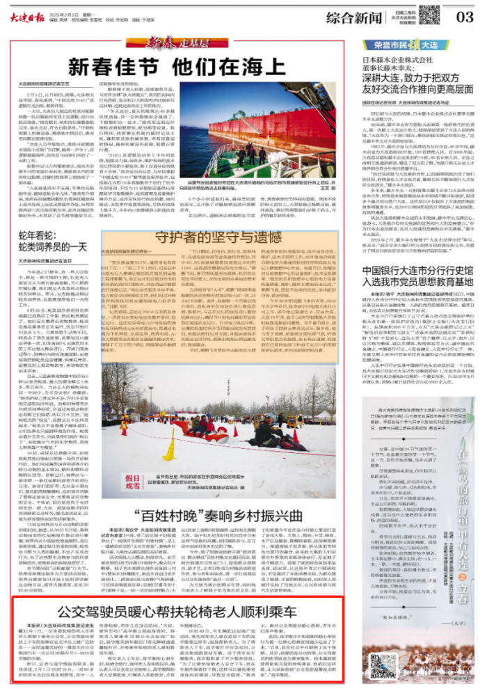 近日,家住星海中龙园年近八旬的陈大娘带着一封表扬信,走进了503路、506路公交车的调度室,以表达对公交车驾驶员的由衷感谢。原来,除夕前夕,陈大娘家中儿女都在外地,连擦玻璃也找不到人帮忙。503路公交车驾驶员李龙得知陈大娘的求助信息后,利用业余时间从家中搬来擦玻璃机器人,为陈大娘解决了这一心病。而这些,只是公交人员帮助社区居民众多善举中的一个缩影。四年前的一个冬日,公交人员在站台清扫积雪时,乘客们提出了一个诉求:冬天等车时间长,特别是下雪时更为不便,希望有个途径能提前知晓相关信息。于是,503路和506路的公交人员迅速响应,建立了微信群。起初,这个群仅有20余人,主要播报发车时间和道路通行状况。然而,当一位老人因为家中电灯故障求助时,驾驶员们毫不犹豫地利用业余时间上门帮忙修好。从此,这个司乘群逐渐成为社区居民寻求帮助、传递邻里情谊的重要桥梁。如今,这个群已壮大至近400名成员,深受周边居民的喜爱与信赖。