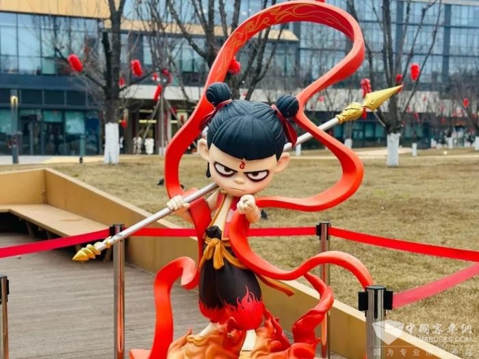 这里是“哪吒宇宙”的线下首秀地!6米高的哪吒雕塑身披混天绫、脚踏风火轮,霸气矗立交子大道,敖丙、太乙真人、结界兽…一大家子聚在这里为过路的游客朋友们表演吹拉弹唱,随手一拍都是“魔童同款”!
