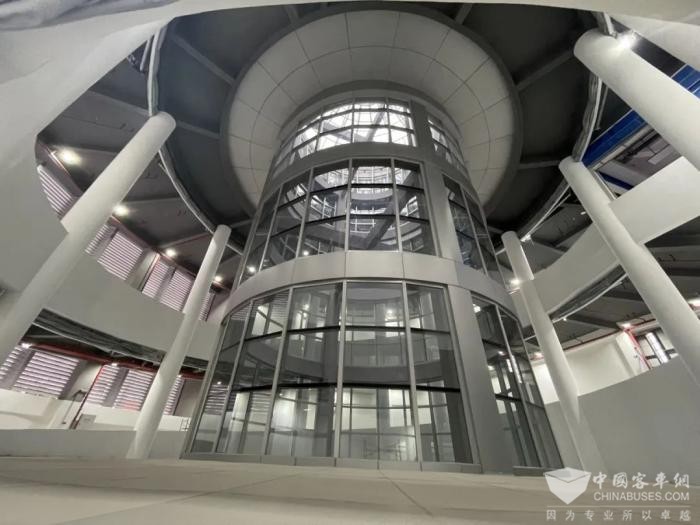 第二、三层为公交停放区及充电区域,站场采用“南进北出”疏导模式,公交车辆沿中山八路进入枢纽大楼西广场落客后,再有序停放于此。