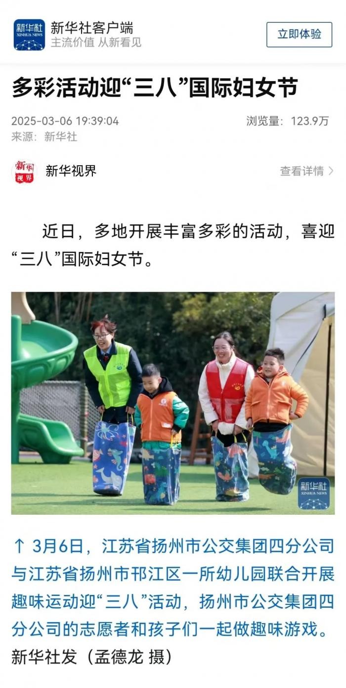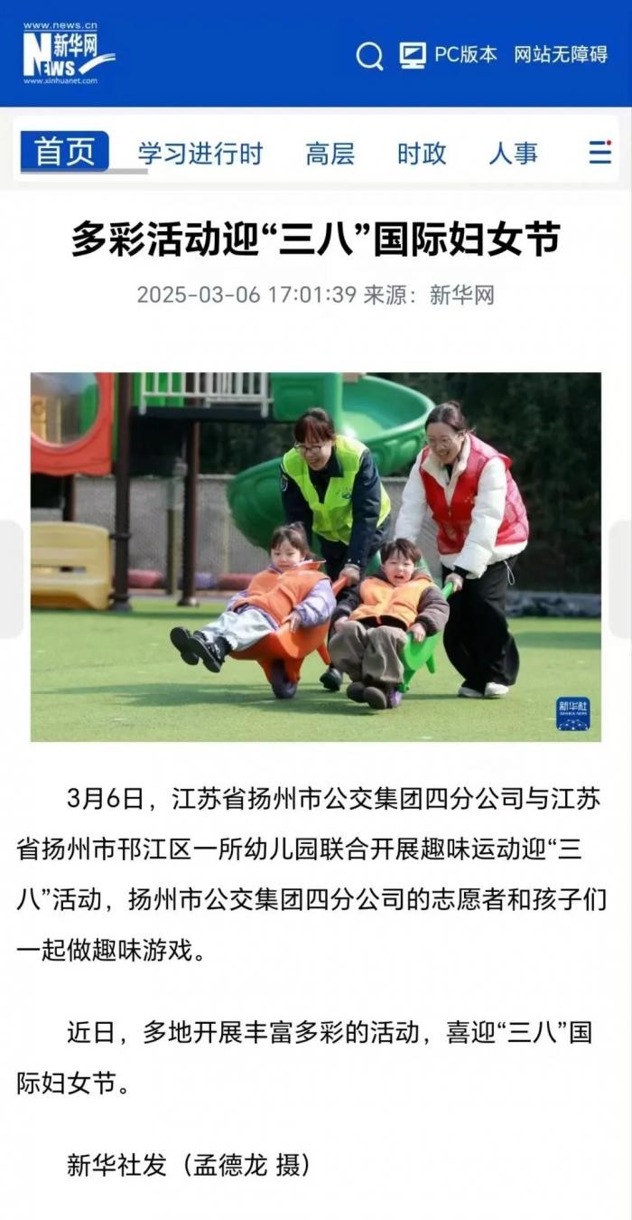 2025年3月6日,四分公司走进东方剑桥幼儿园,开展趣味运动迎“三八”活动引起广泛关注,获得新华社、新华网等权威媒体点赞报道。