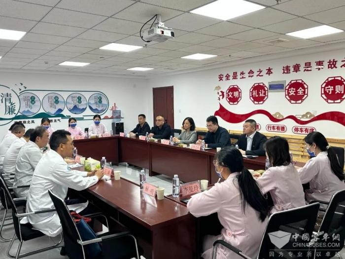 义诊结束后,两家支部召开座谈会,分别介绍了各自的党建品牌建设及特色亮点工作,并就共建工作具体内容进行了讨论。会上,徐医附院还送出精心准备的医疗物品,东部公交公司回赠了共建纪念牌。
