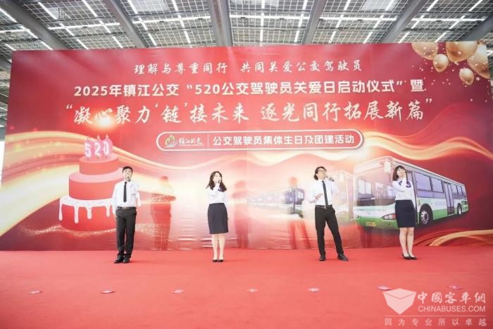 2025年5月16日,镇江公交“5.20公交驾驶员关爱日”启动仪式暨“凝心聚力‘链’接未来、逐光同行拓展新篇”公交驾驶员集体生日及团建活动在镇江科技新城东园公交枢纽站举行。市交通产业集团有限公司党委副书记、总经理蔡超,市交通运输局党委委员、副局长周明盛,市交通运输综合行政执法支队党委书记、支队长凌建锋,市公路事业发展中心党委副书记、副主任卞贻辉,市综合交通事业发展中心党总支副书记、副主任葛鸣明,市港航事业发展中心党委委员、纪委书记徐璟和业务单位领导、乘客代表、公交驾驶员代表共计120余人参加了活动。
