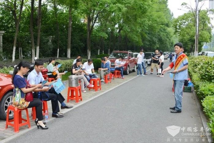 资料:中考期间,公交集团有关巴士公司在考点外开展志愿服务活动。