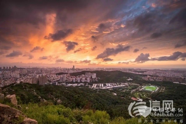 夕阳时分,浮山森林公园山顶俯瞰山下景色