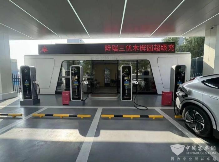 为了让客户充电操作更加轻便,超级充电站设备皆配备液冷枪线加持智能动态,响应充电负荷需求,柔性电网调控需求等黑科技引入光伏绿电,落实智能电网调控“3060”双碳战略,同时超级充电站设置了车主服务中心,为前来充电的客户在短暂的充电等候时间内提供舒适的休息环境。超级充电站已接入公交集团“一路同行”APP,能为客户提供24小时有人值守的高标准超级充电服务。