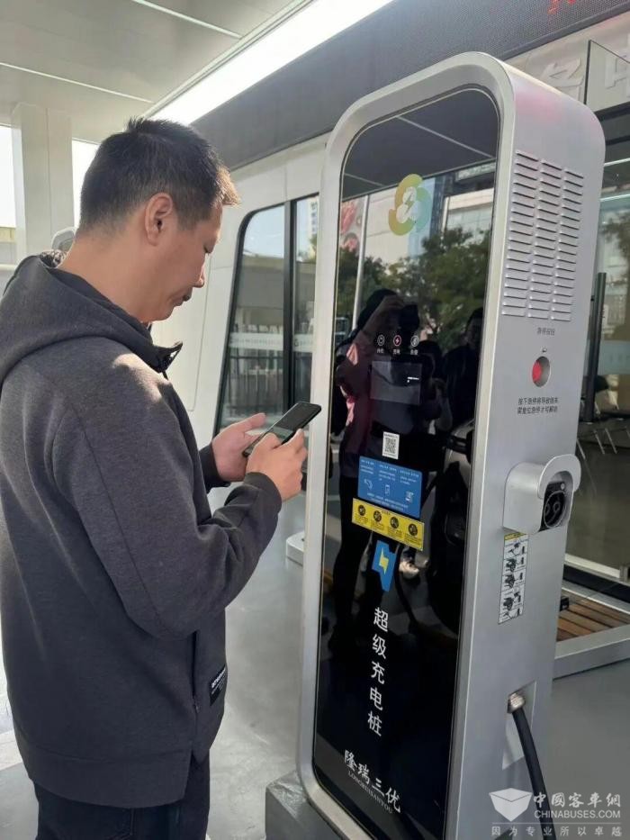 几百米外的马官营公交场站的快速充电站里,车主孙先生刚刚用20分钟完成了汽车电量从20%到80%的快充。“价格便宜,位置好找,操作很简单,就扫个二维码就可以了,几十秒。”