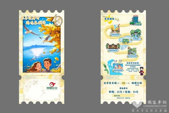 昆明公交集团北部营运分公司赏杏观鸥专线讲解员 何钰娴:“单程票就是从北市区车场到海埂大坝,或者从海埂大坝返回北市区车场,往返票可以当天不限次数地乘坐我们的赏杏观鸥专线。”