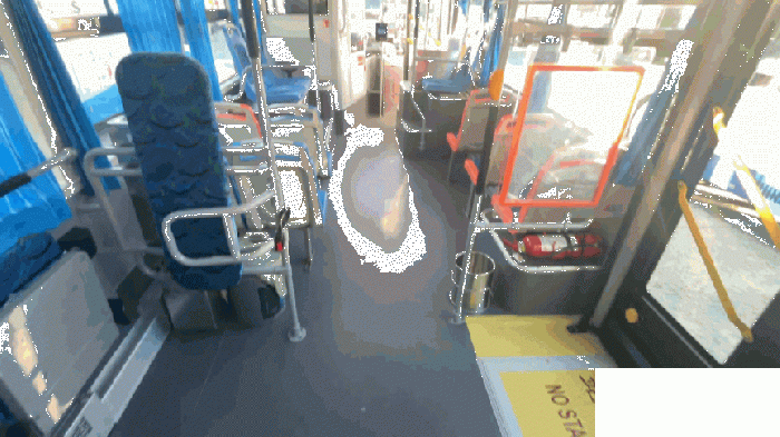 公交车前后车门处采用一阶踏步设计,台阶高度降低,方便乘客上下车。后车门处配备无障碍翻板,让轮椅或大件行李可以顺利进出,车内对应位置设有轮椅安放区与折叠座椅,满足不同乘客的乘车需求。