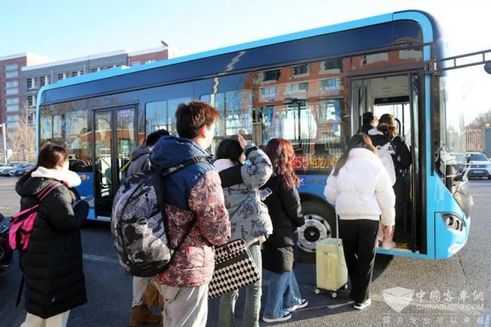 【乘客在城市学院站乘坐更新后的顺55路公交车】