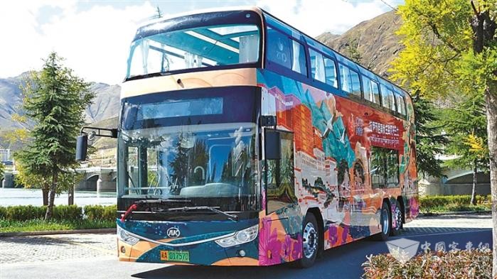 游客体验拉萨双层美食主题观光巴士文旅项目