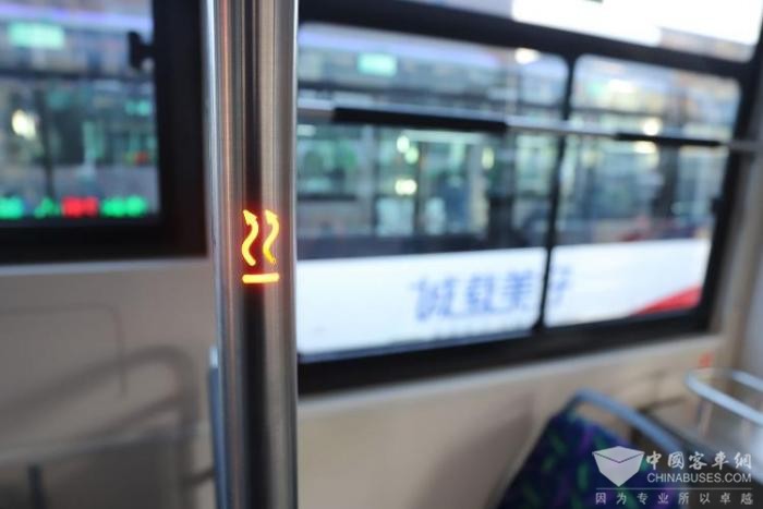 在便民服务方面,新车充分考虑特殊乘客群体需求,站立区域实现“0”台阶全平地板设计,极大方便了老年人、儿童、残疾人等特殊群体上下车,让出行更具温度。同时,车辆还配备了轮椅专用区、加热扶手和USB充电口等多项人性化设施,从细节上照顾不同乘客的需求。乘坐114路的王先生告诉记者:“新车的座椅明显变软了,坐着很舒服,而且车辆噪音也很低,起步停车也更加平稳了。”此外,为助力实现响应式公交运营,新车还安装了下车提示器,全面满足不同位置乘客的下车摁铃需求,精准匹配市民出行节奏。值得注意的是,原车右侧反光镜背面配备电子线路显示屏,在进站过程中,能让乘客清晰、及时识别车辆线路号,便于提前选定所乘车辆,减少候车时间。