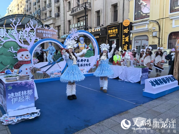 为让更多游客感受“冰雪森林・童话伊春”的独特魅力,伊春市在哈尔滨中央大街设置了冰雪主题沉浸式旅游咨询台。咨询台以雪景为装饰背景,配备专业文旅顾问,为市民游客提供线路咨询、景区介绍及专线预订指引等服务。