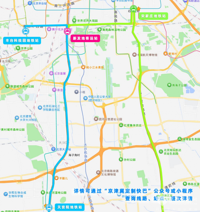 全线在北京端设新发地客运站、丰台科技园地铁站等4个上下客站点,确保与城市轨道交通的近距离衔接;霸州端覆盖李少春大剧院、温泉小区、霸州一中、南孟等多个站点,实现就近上车、便捷换乘。![]()