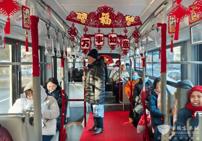 为了持续优化公交公司服务品牌,为市民和外地游客创造良好的乘车环境,1月19日,佳木斯市公交公司又将新购置的30台崭新空调公交车正式上线,分别在2路、3路、7路运营。户外寒气袭人,车内温暖如春。车厢里装饰一新,车窗上、车棚上有张贴有悬挂的鎏金福字、中华结等,处处透着喜庆。乘客的脚下铺着防滑垫,所有寒气一扫而光。