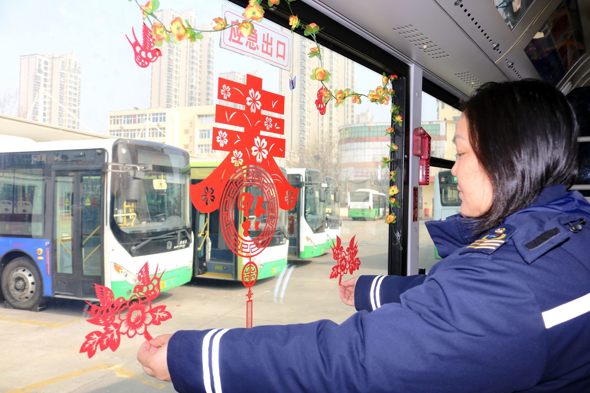 作为青岛历史最悠久的公交线路之一,1路公交车承载着无数岛城市民的记忆。2月3日,记者步入1路主题车厢,一个醒目的红色“春”字首先映入眼帘,成为视觉焦点,象征着春回大地、迎新纳福。周围灵动的红色燕子贴纸翩翩环绕,生动勾勒出“莺啼燕语报新年”的欢快图景。沿车厢扶手,翠绿的花藤藤蔓蜿蜒伸展,层层叠叠的绿意与鲜艳的“春”字、红燕相映成趣,车厢内顿时生机勃勃。