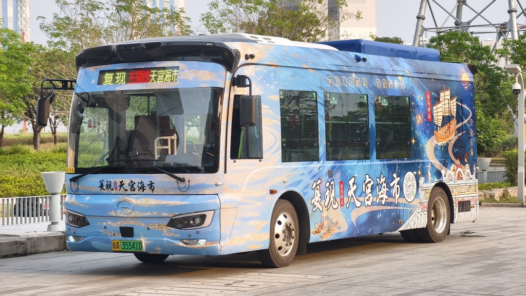 专线整车围绕海丝古韵、天宫海市、波罗诞祈福等主题进行氛围包装,融合灯光布置、主题画面与背景音乐,营造沉浸式乘车环境。