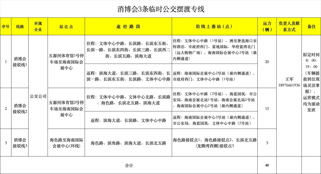 免费乘车:消博会期间,所有持消博会证件及参与保障的志愿者均可免费乘坐全市常规公交线路(不含微公交线路),且不限乘车次数。
