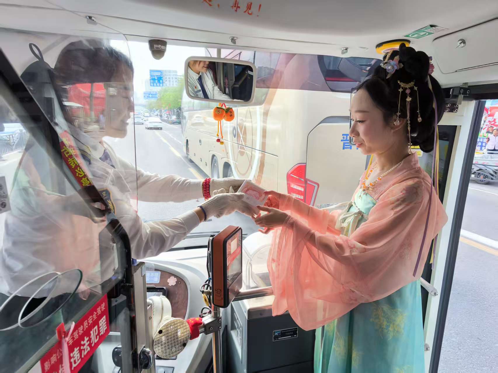 “恭迎公主、王子殿下,请上车!”在洛阳龙门石窟公交站,“神都游”7号线车长石亚杰一句亲切问候,温暖了各地游客的心。工作中,他化身文旅推介官,把每一程都当作“首秀”,为游客讲解景点历史、推荐特色美食、赠送文创好礼,细致周到的服务收获连连点赞。今年牡丹文化节,洛阳公交精准对接文旅出行需求,动态优化运力调配,景区专线运力大幅提升,高效保障高峰客流快速疏散;延长10条主干线路夜间运营时间,适配“夜游龙门”、洛邑古城等夜间文旅活动,切实解决游客返程难题。5条“神都小巴”网约公交连线成网,覆盖城区与近郊,实现“门对门”便捷出行;适时开通校园摆渡、赏花专线、景区区间车,串联热门文旅打卡地,打通出行“最后一公里”。81路“簪花”主题车厢惊艳亮相,变身流动的城市文旅窗口,获人民网、新华社等主流媒体争相报道。