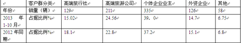 2013年1-10月旅游房车市场调研分析