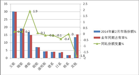 2014年前2月市场占有率% |