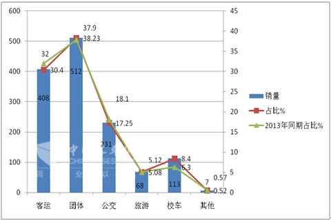 2014年1-4月天津市场按用途划分大中客销量结构统计表