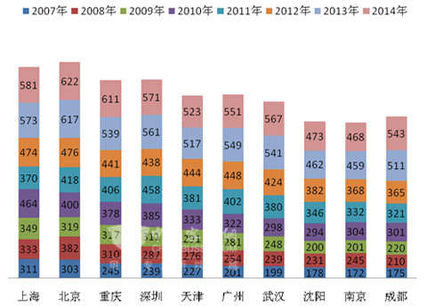 1、2014年1-5月,上海、北京、重庆、深圳、天津等全国十大城市是11-12米公交的主要销售区域,11-12米公交的市场集中度在逐年升高,占据的市场份额超过了60%。
