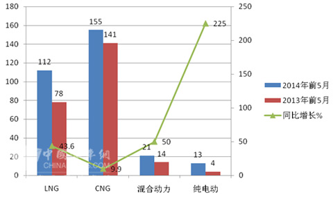 1、2014年1-5月新能源及节能环保公交车型销量301辆,同比增长27%。