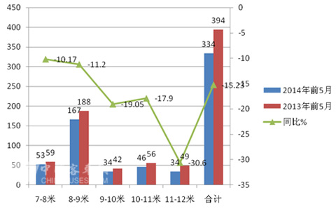 1、2014年1-5月云南区域旅游客车总体下降15.23%。