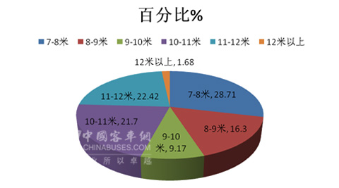 3、7-8米和11-12米段是广东市场中需求较大的两个长度段产品,需求最小的是特大型客车。